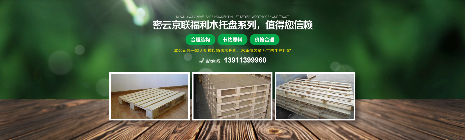 北京京聯(lián)國順木制品有限公司 (原北京市密云縣京聯(lián)福利木制品廠)成立于1993年,位于北京市密云縣西田各莊鎮(zhèn)蒼頭村,占地約5000平米。我公司工廠是一家大規(guī)模以銷售木托盤為主的生產(chǎn)廠家。本工廠是一家直接采購原木,按客戶要求生產(chǎn)規(guī)格尺寸的托盤,我公司工廠位于河北省承德市有著木材加工點(diǎn),可以做到,從山上的木頭下山到客戶手中的托盤都是一手貨,減少了中間商的費(fèi)用,所以我公司售出的產(chǎn)品對(duì)北京這個(gè)龐大的市場(chǎng)來說在同樣的規(guī)格尺寸的托盤來說價(jià)格比較占優(yōu)勢(shì)。